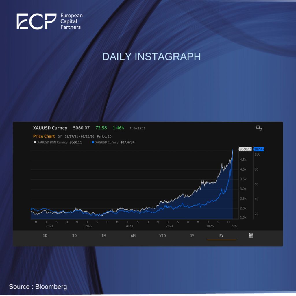 L’or et l’argent atteignent simultanément de nouveaux sommets, ce qui est sans précédent dans l’histoire récente. En l’absence d’une forte inflation et d’un choc d’offre manifeste, le message est clair : l’or n’est pas seulement un actif, c’est aussi une monnaie. Lorsque la confiance dans la monnaie fiduciaire est remise en question, les actifs réels retrouvent toute leur pertinence. L’augmentation des déficits budgétaires, la reprise des débats sur l’indépendance des banques centrales et les ingérences politiques, en particulier aux États-Unis, relancent la demande de valeurs refuges.